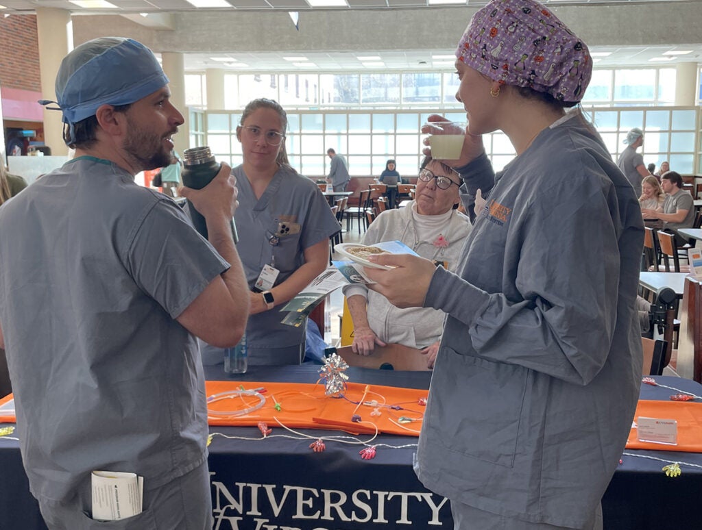 The number of UVA Health University Medical Center team members attending the Healthcare Education Fair doubled this year, setting a record at nearly 200! More than a dozen, two and four-year colleges, universities — and programs that offer healthcare degrees and certificates — participated in the 2025 event Thursday, Oct. 23 at UVA Health University Medical Center Main Hospital Cafeteria.