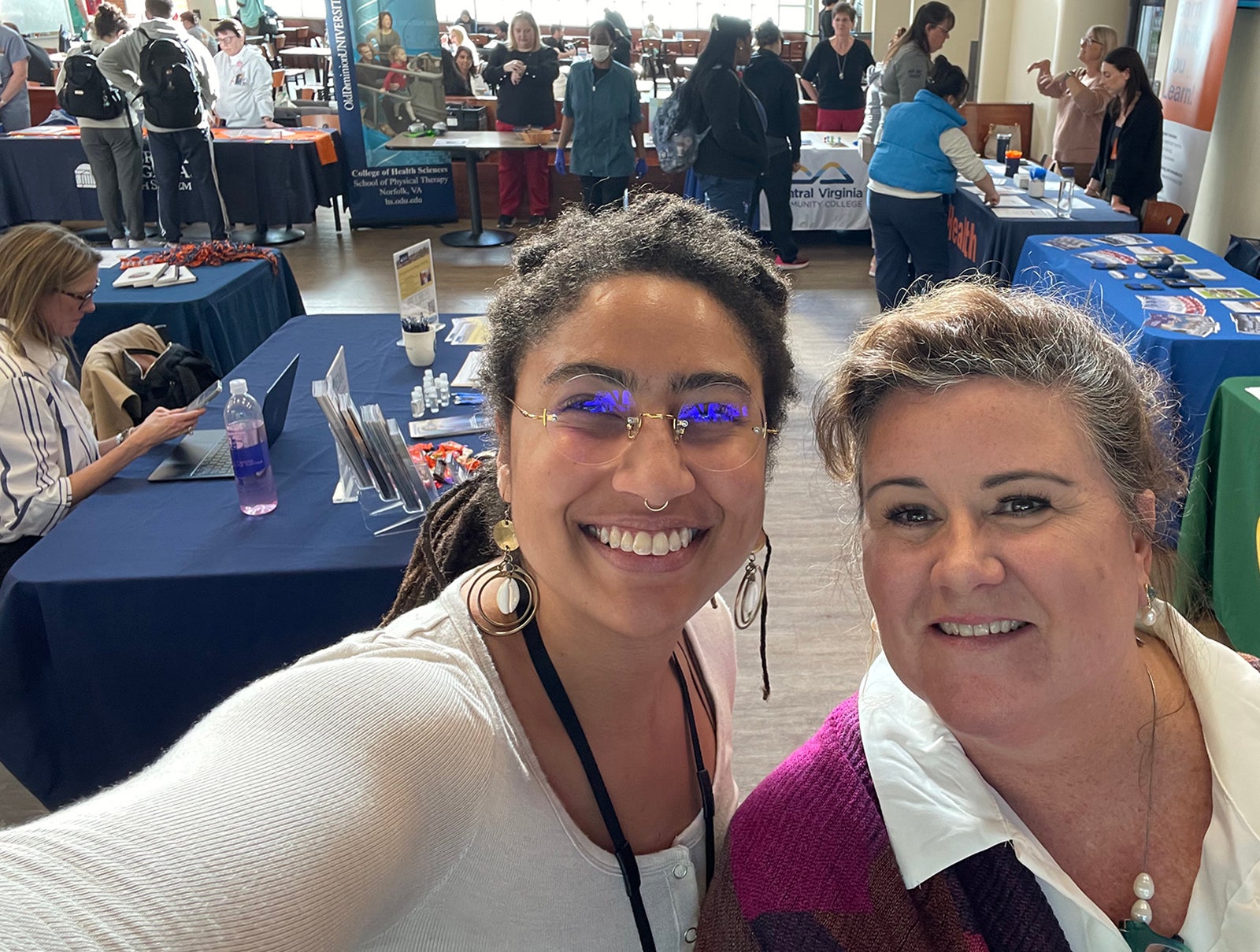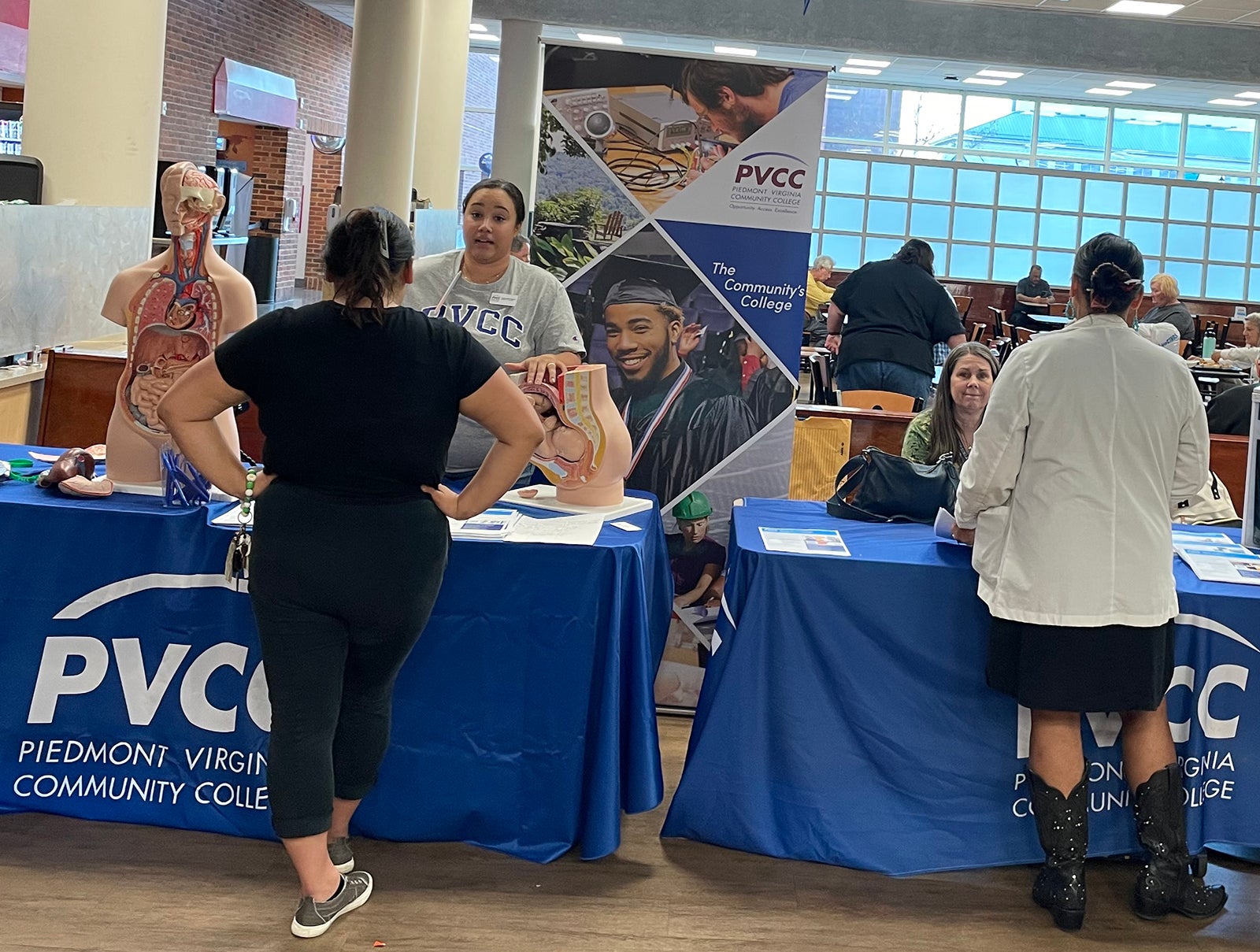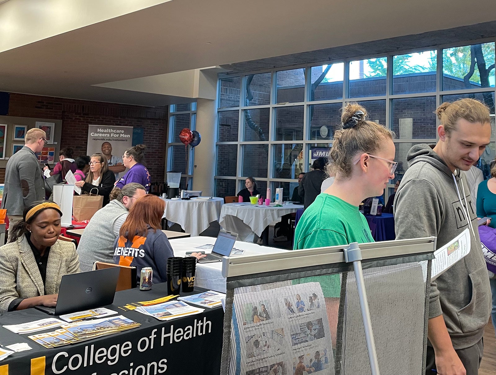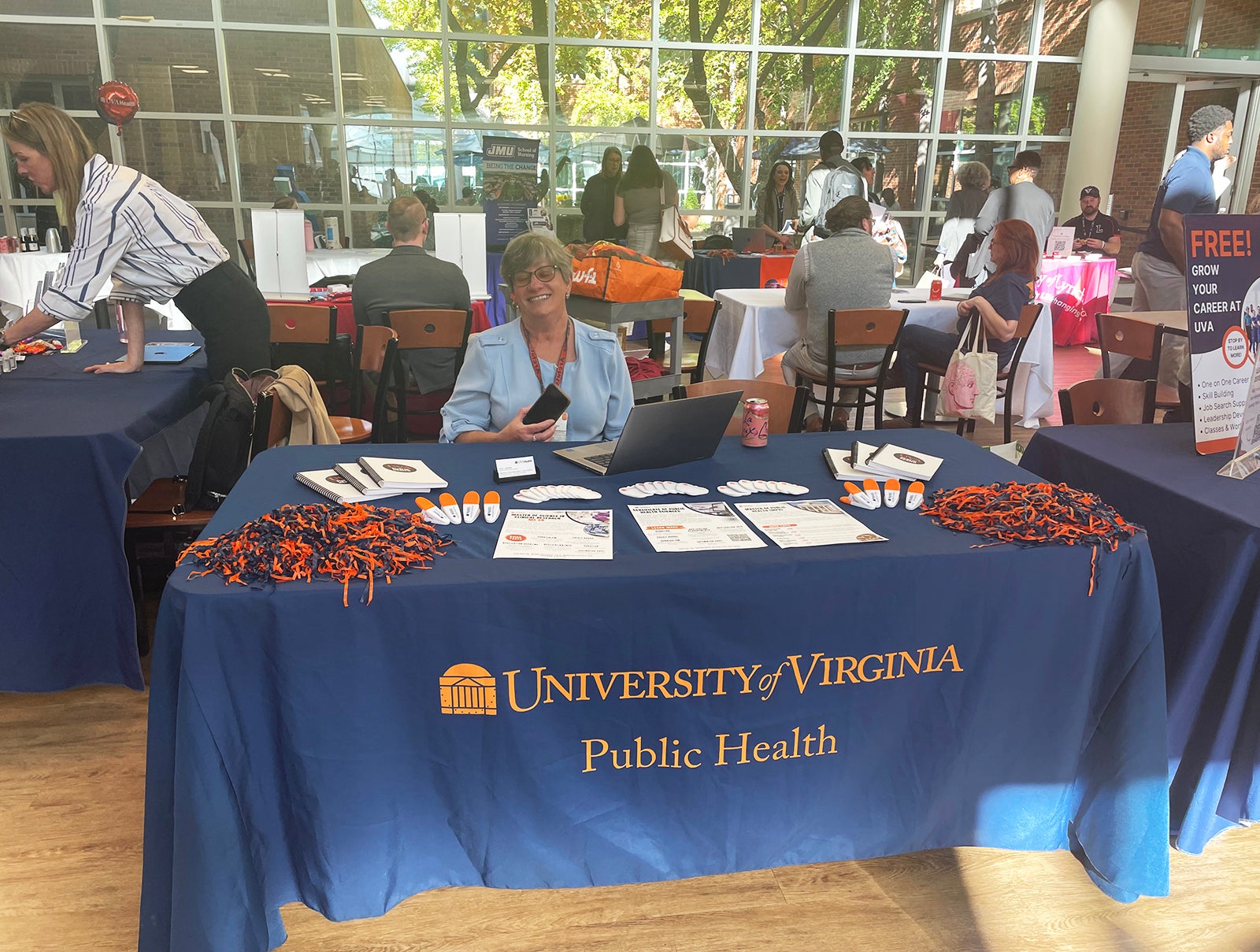UVA Health team members met admissions counselors and other representatives for the latest information on education paths to working in a wide range of careers: access associate, athletic training, certified medical assistant, CT tech, community health, emergency medical technician (EMT), executive leadership, healthcare administration, health informatics, IR tech, LPN, nursing (ADN, BSN, MSN, DNP, CRNA), nutrition, pharmacy tech, physician assistant,medical science, patient care technician, phlebotomy/specimen management technician, physical therapy, public health sciences, radiology, rehabilitation sciences, respiratory therapy, sonography, surgical tech, social work, and sterile processing technician.