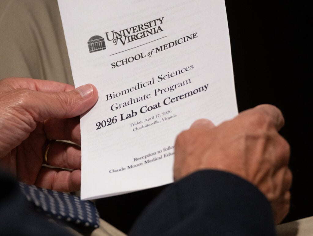 The School of Medicine celebrated our first-year BIMS students at the UVA Biomedical Sciences Graduate Program (BIMS) Lab Coat Ceremony on April 17. This event marks the students’ transition to the next phase of their graduate careers when they begin their mentored research projects.