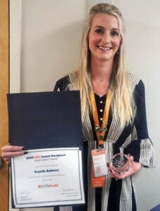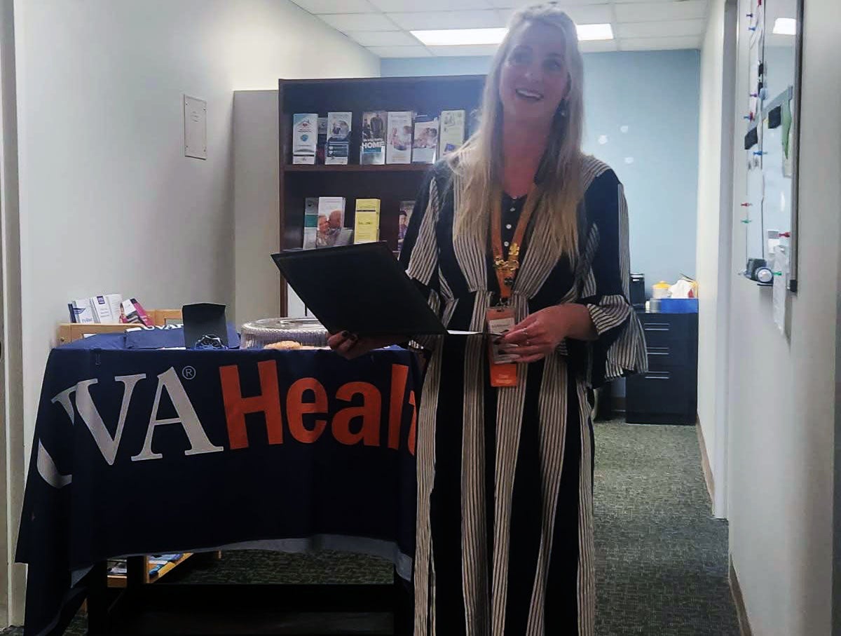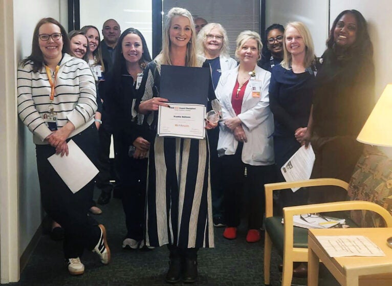 Krystle Bellomo, LSCSW, is Manager of Case Management at UVA Health Haymarket Medical Center and Prince Wiliam Medical Center. Now, she's received a BEE (Being Excellent Everyday) Award from Prince William Medical Center. The BEE Award celebrates the important relationship between nursing and other care team members.