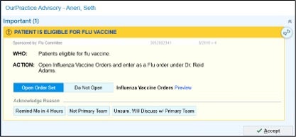 The updated layout of OurPractice Advisories (OPAs) makes your options more clear when deciding how to respond to an alert. Additional benefits: