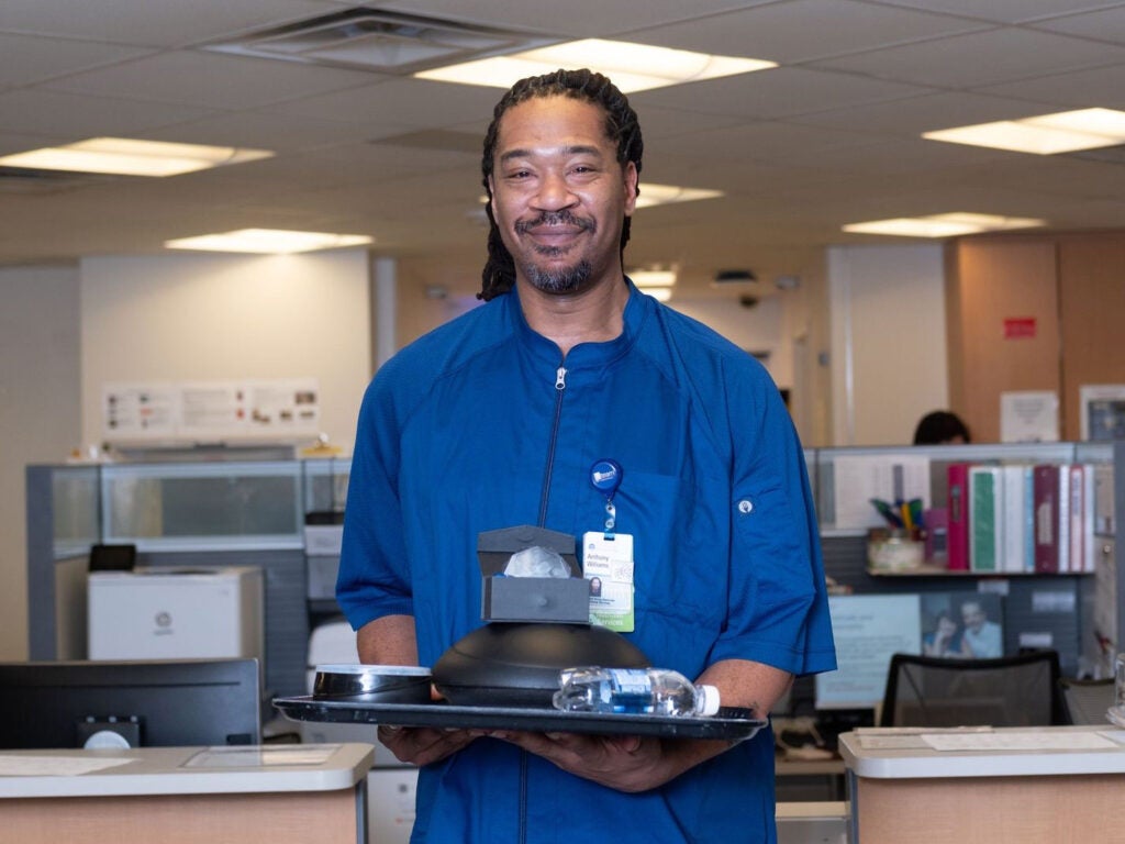 "When my spouse was in a procedure or getting imaging and missed ordering meals, Anthony ordered food based on previous preferences to ensure nutrition. I was amazed to come back from radiology to find a tray filled with my spouse's favorite foods and that Anthony had not only remembered, but took the initiative to go that extra mile.