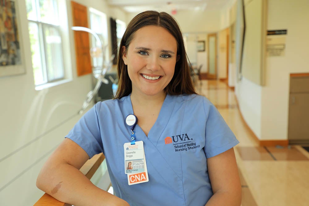 Meet Geanette Boggs. Born in India, raised in Pound, VA, and agile with chainsaws, excavators, and tractors. A future psych NP, CRNA, or nurse aesthetician who loves to hunt and fish. Legally emancipated at 16, considers her grandparents her best friends, and engaged to fellow UVA student and Cavaliers football player Cole Surber. A UVA Health Certified Nursing Assistant who loves making her own venison jerky and working with her hands who one day hopes to be a homesteader. Currently working with her grandfather to build a cabin and an alumna of national “Beyond Differences” youth leadership curriculum building group. Member of the BSN class of 2028.