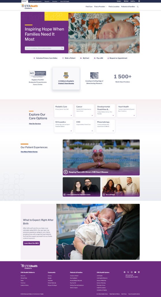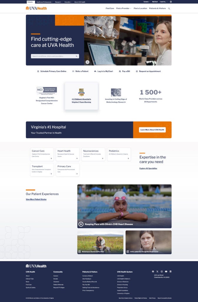 - Cleaner, more streamlined page layouts that bring the UVA Health brand to life.