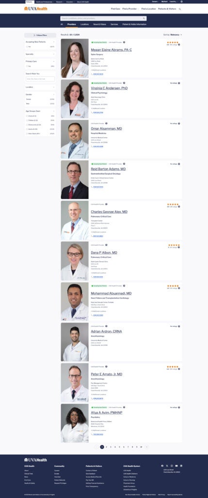 “The launch of these new sites has been years in the making — a testament to the complexity of the UVA Health digital landscape but also our commitment to engaging all stakeholders in the process,” notes Stanley. “We are grateful to our numerous UVA Health partners in this project and hope they share our excitement and pride in delivering a more streamlined, user-centric, website experience.”