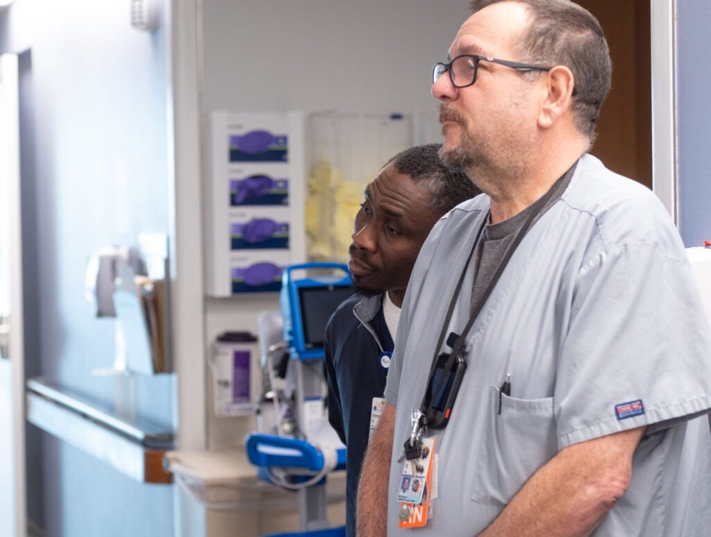 Morgan Kaminski, MSN, RN, CMSRN, NEA-BC, Nurse Manager, 5 West Surgical Subspecialties and Trauma, and Ty Mullins, BSN, RN, CMSRN, nominated Baker: