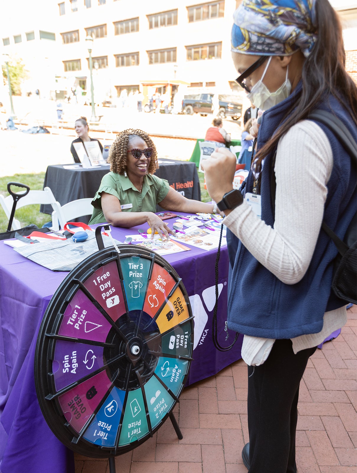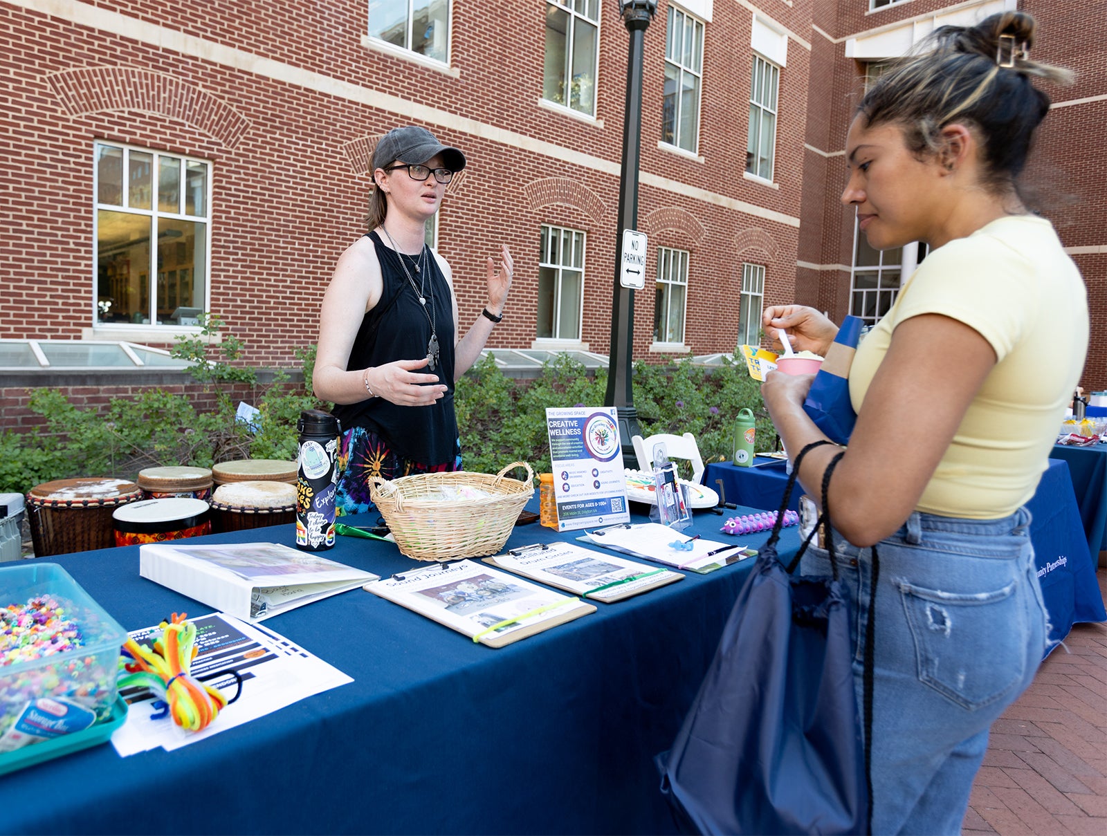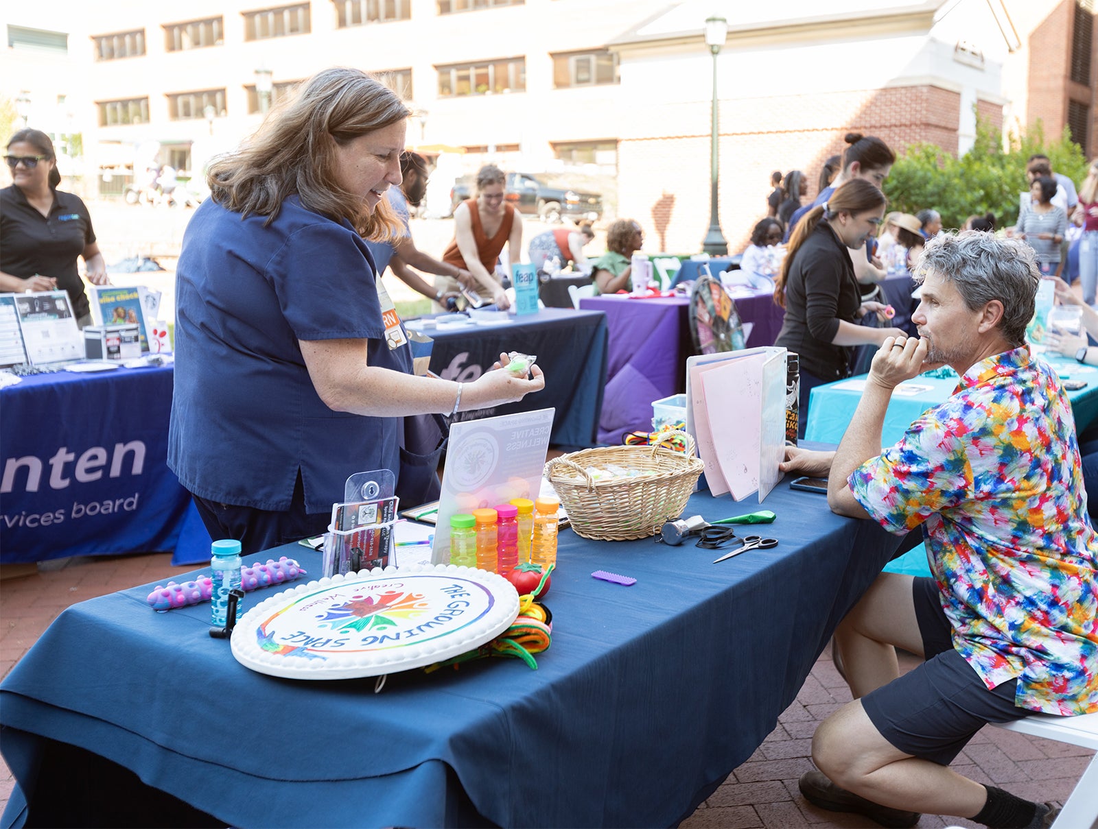 Among those organizers — Ashley Woodard, Ed.D., (above, right) Director of Student Engagement and Strategic Partnerships, Office of Medical Sciences Outreach, University of Virginia, School of Medicine, who hailed the festival as a “wonderful collaboration between UVA School of Medicine and UVA School of Nursing in service of our UVA Health community.” She describes: “After months of planning, I was in awe of what we created! Seeing folks engage with the many community resources in attendance is moving. We’ve been doing this for a few years now and I think this is our best one yet! Hopefully, those in attendance left feeling a little lighter, a little better — and with some tangible ways to prioritize health and wellbeing!”