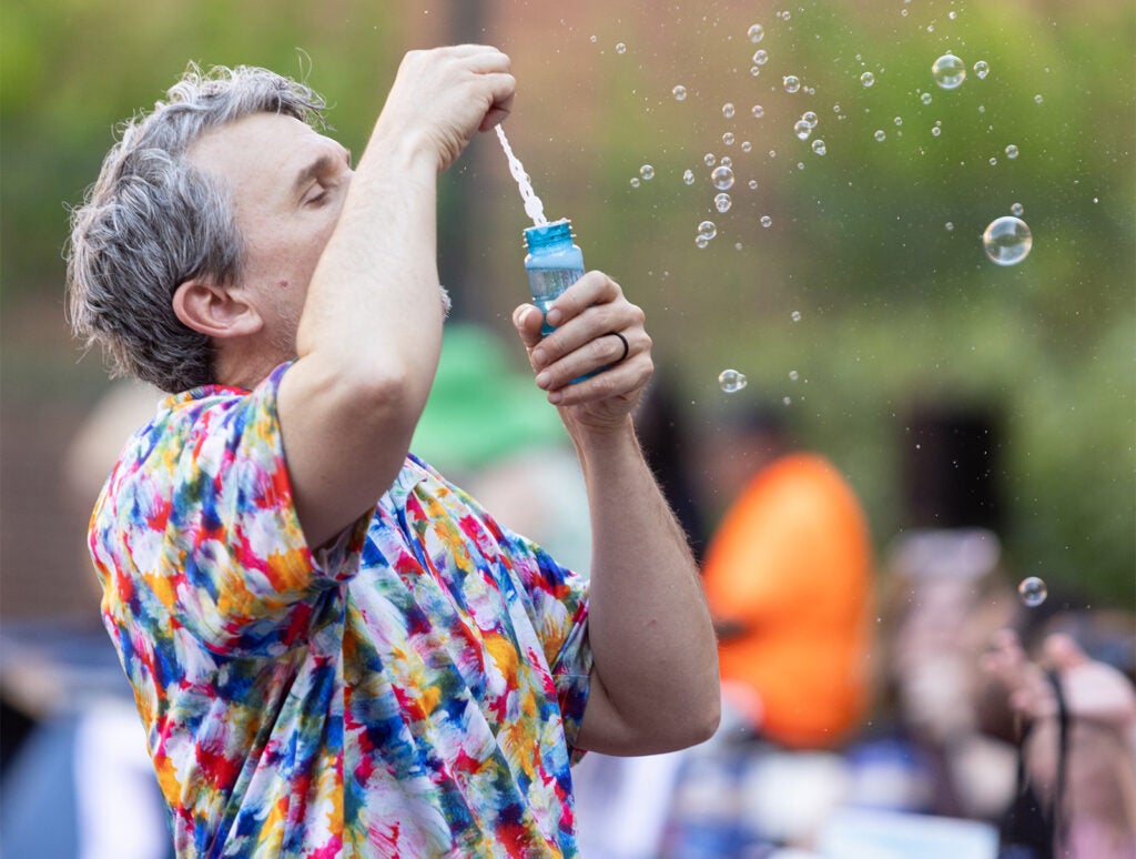 Colin Derdeyn, MD, (below, center) interim Dean, UVA School of Medicine. “Supporting the mental health and wellness of the UVA Health community is one of the most important things we can do as an organization. I was really impressed with the breadth of resources available internally and in the community, and the engagement of so many of our faculty and staff. The festival organizers did a great job of showcasing resources to sustain wellness — providing many options to put into practice.”