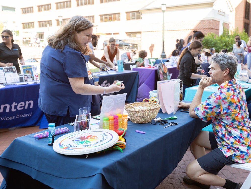 UVA Health and UVA offices represented on-site this year included UVA Center for Community Partnerships, UVA Department of Psychiatry and Neurobehavioral Sciences, UVA Center for Leading Edge Addiction Research (CLEAR), Faculty and Employee Assistance Program (FEAP), President's Council on UVA-Community Partnerships, University Medical Associates Integrated Behavioral Health Program, and UVA Health Claude Moore Health Sciences Library.
