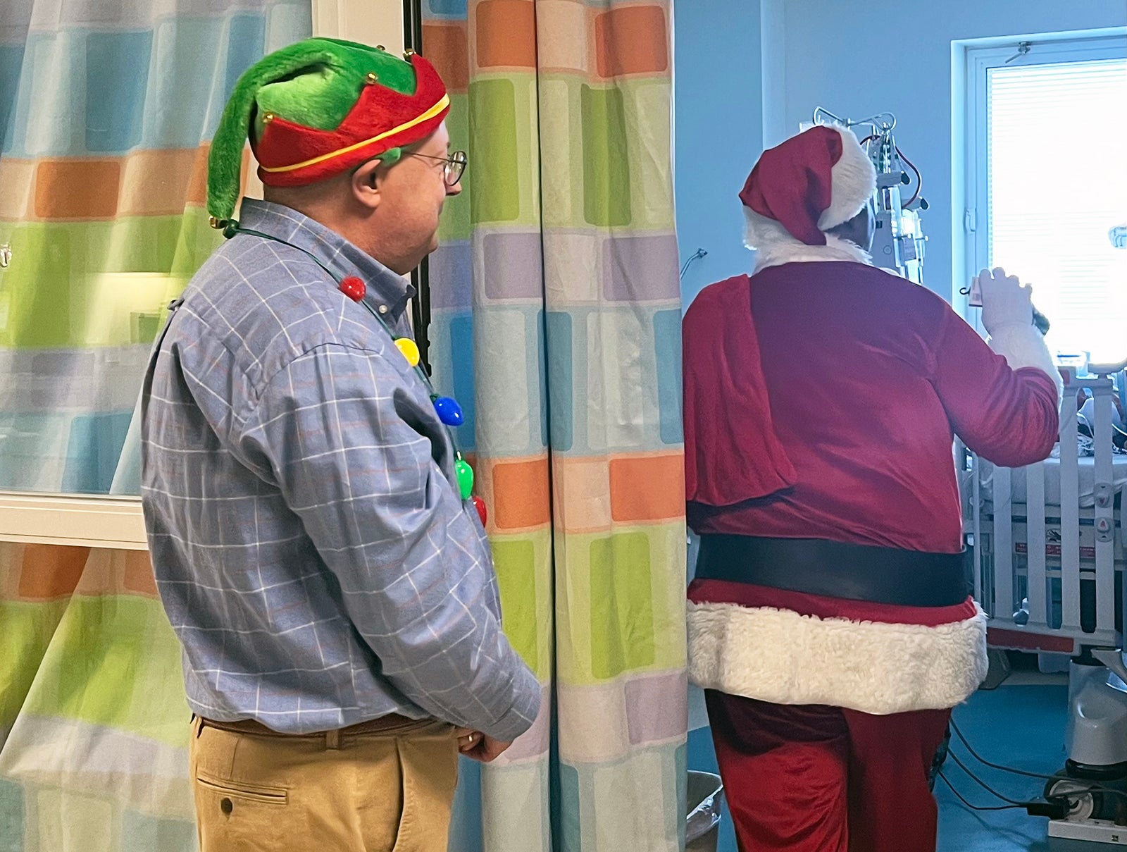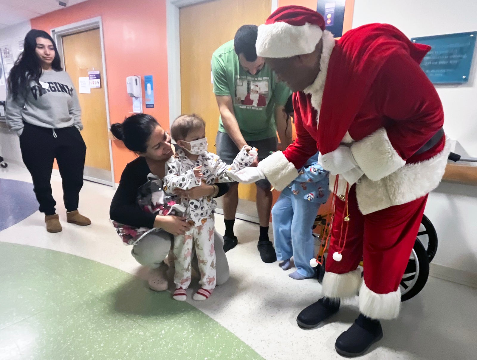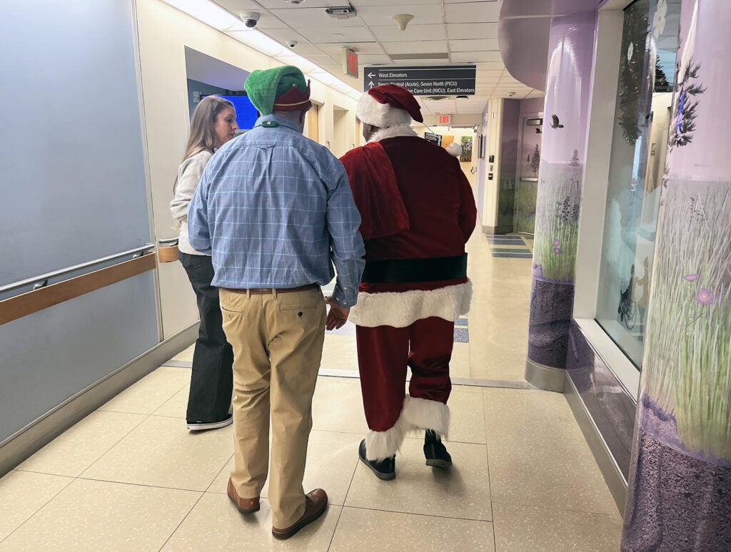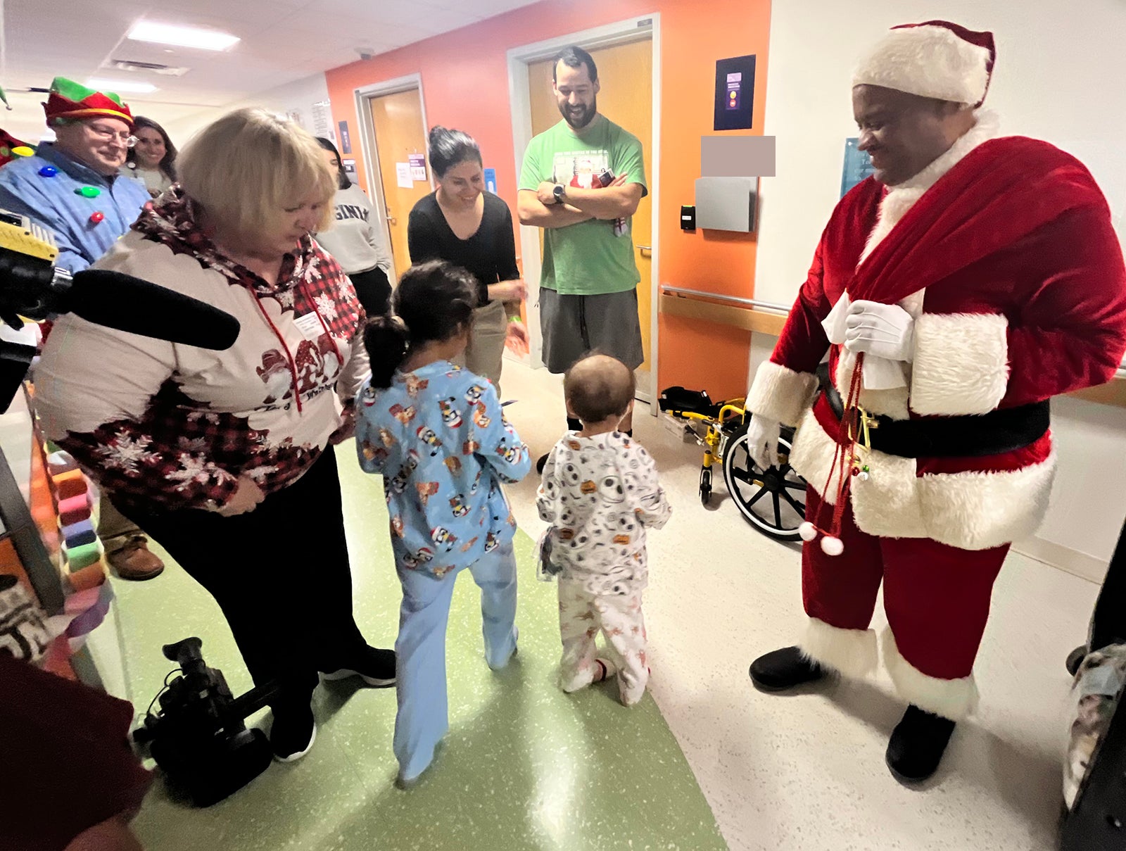 ‘Twas the morning of Christmas, when all through UVA Health Children’s seventh floor — Santa Claus and his elves were stirring, delivering gifts to some of our youngest patients, door-to-door.
