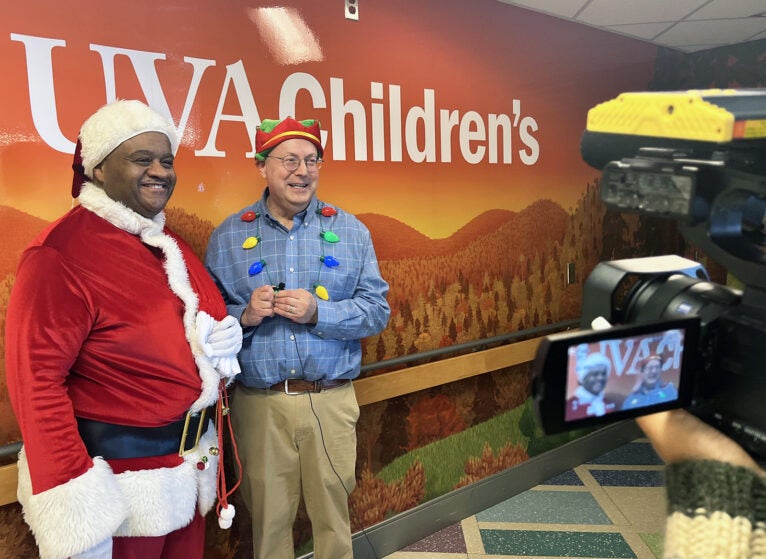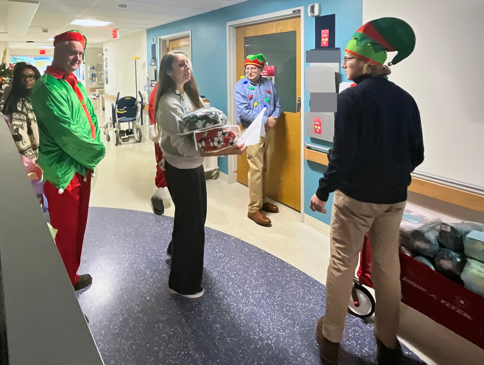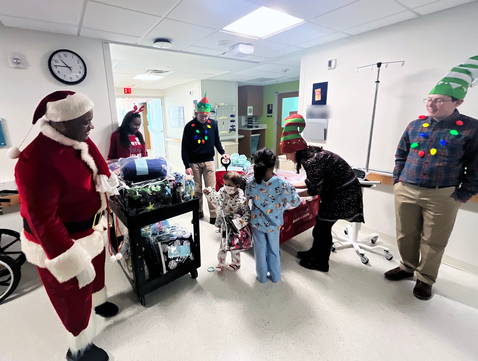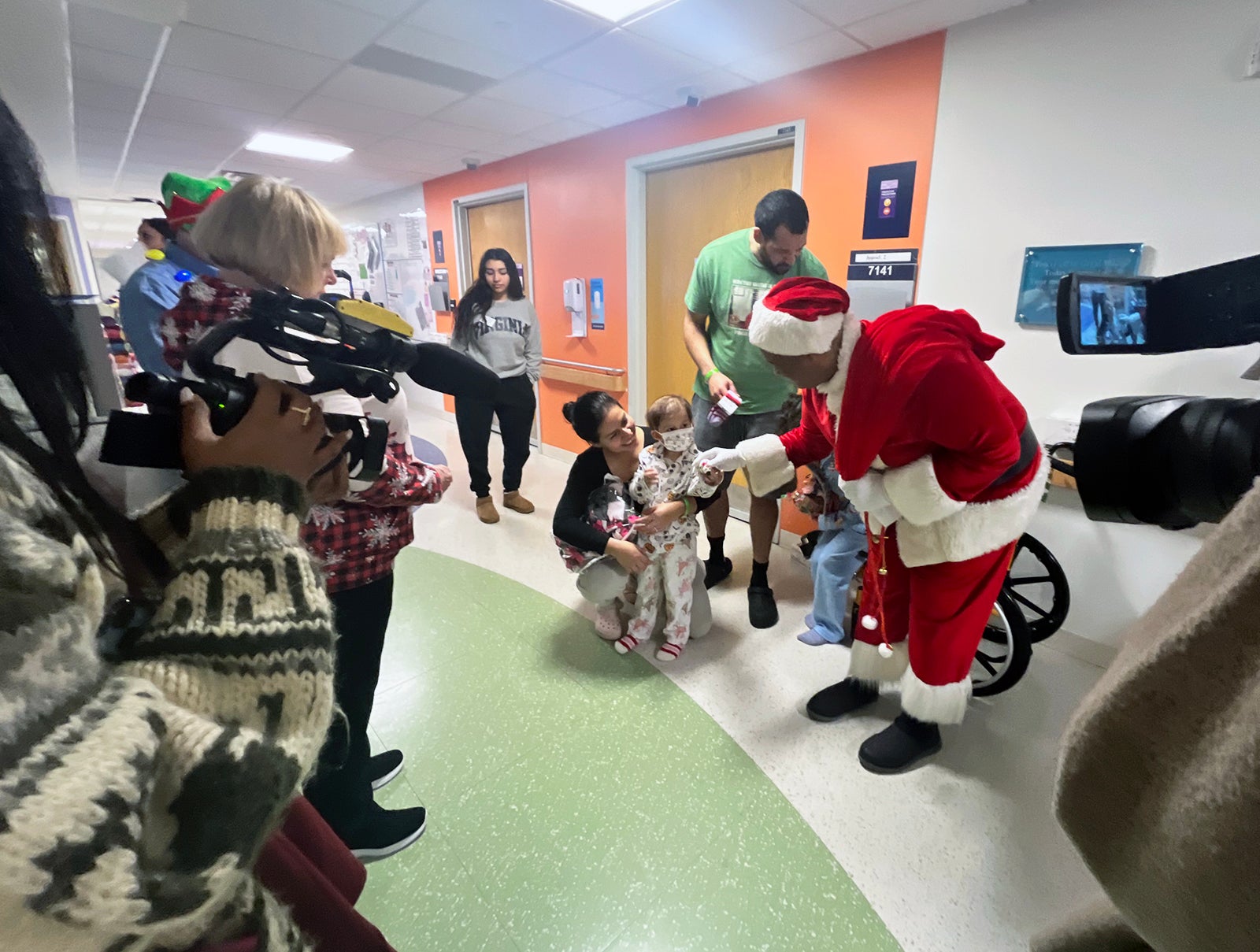 ‘Twas the morning of Christmas, when all through UVA Health Children’s seventh floor — Santa Claus and his elves were stirring, delivering gifts to some of our youngest patients, door-to-door.