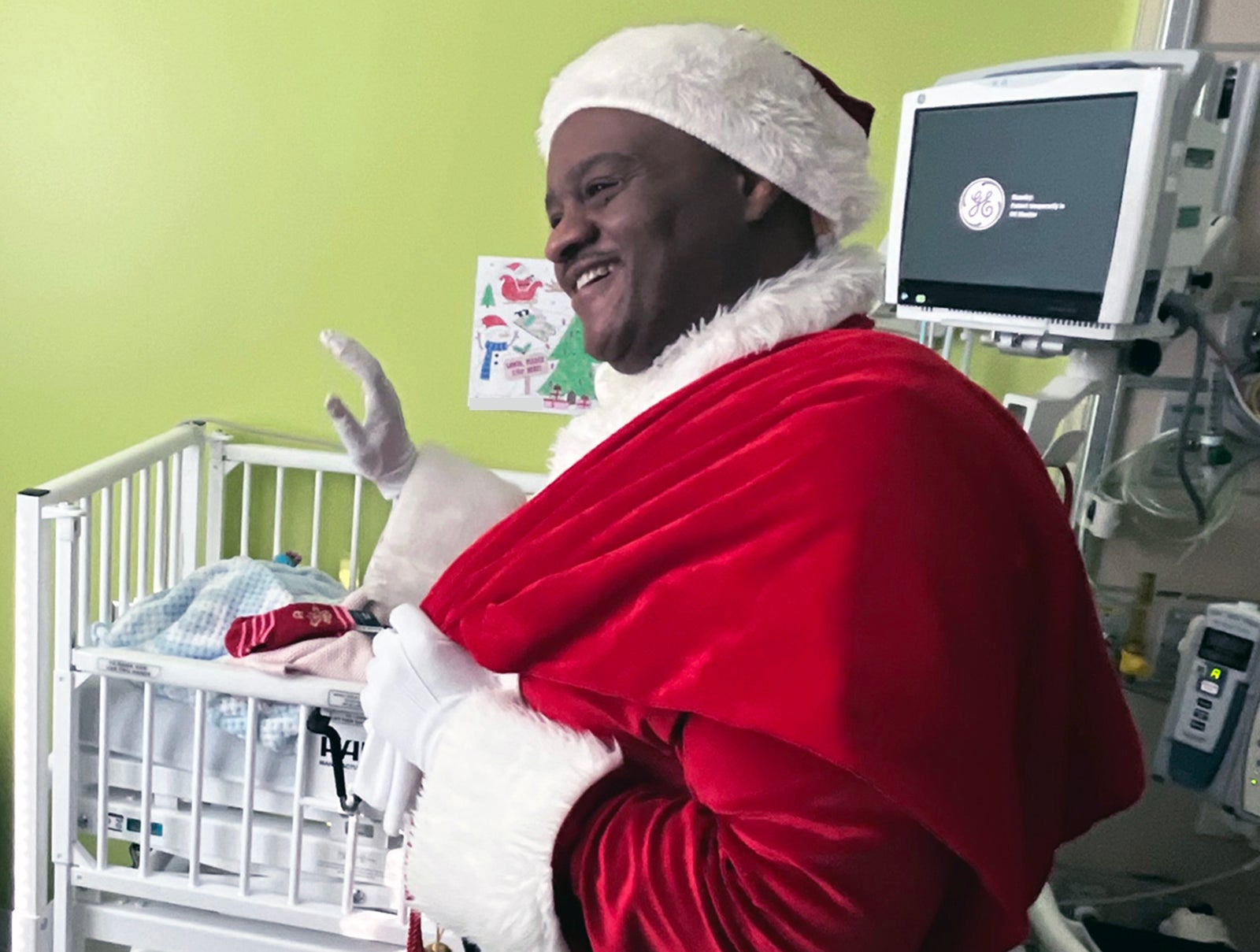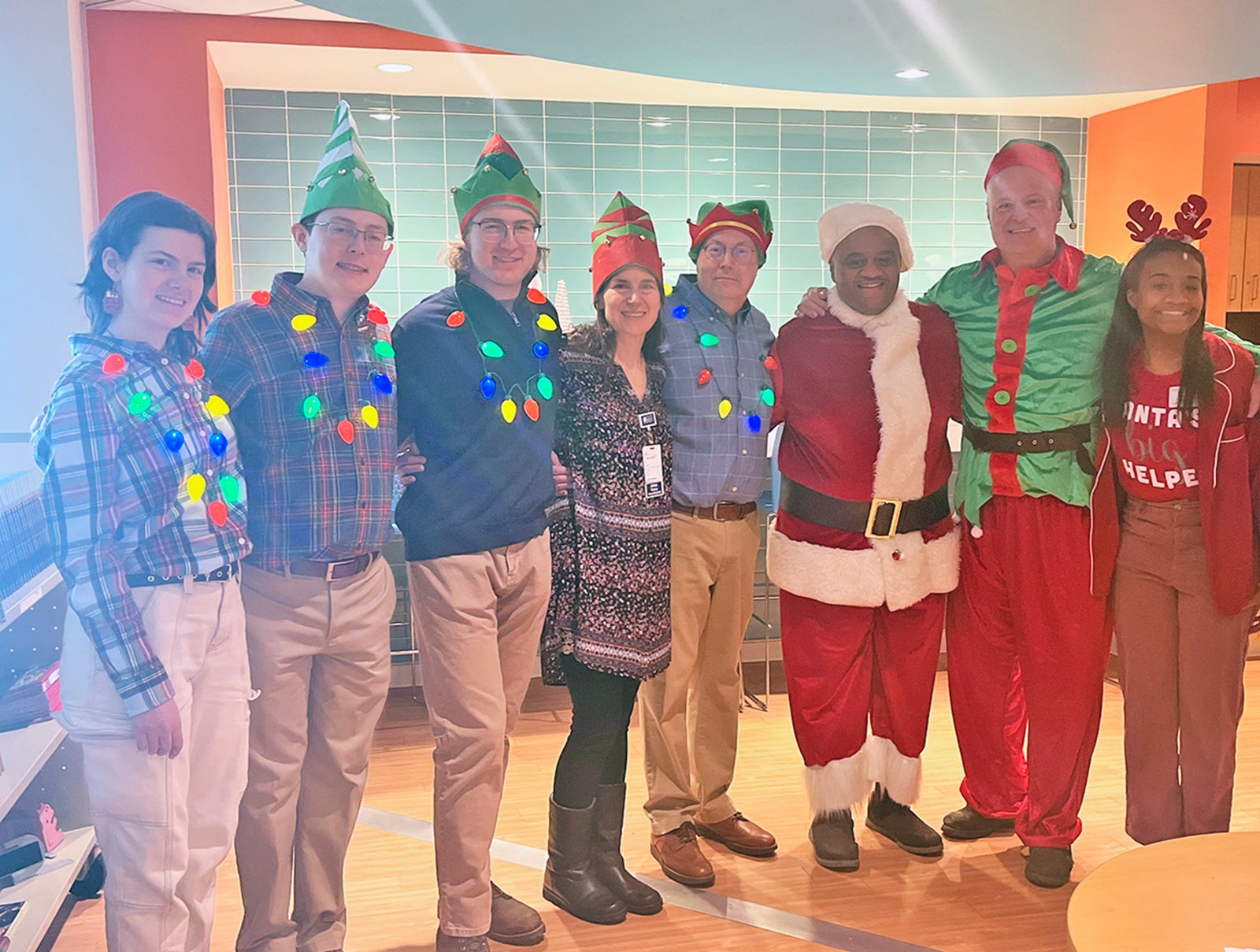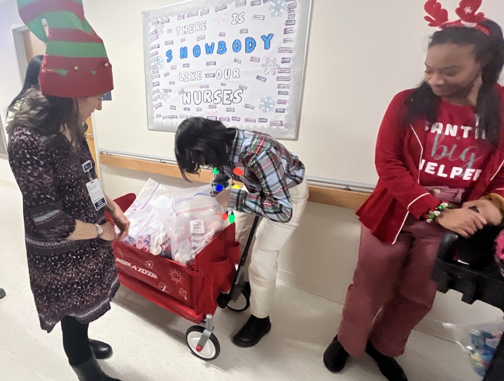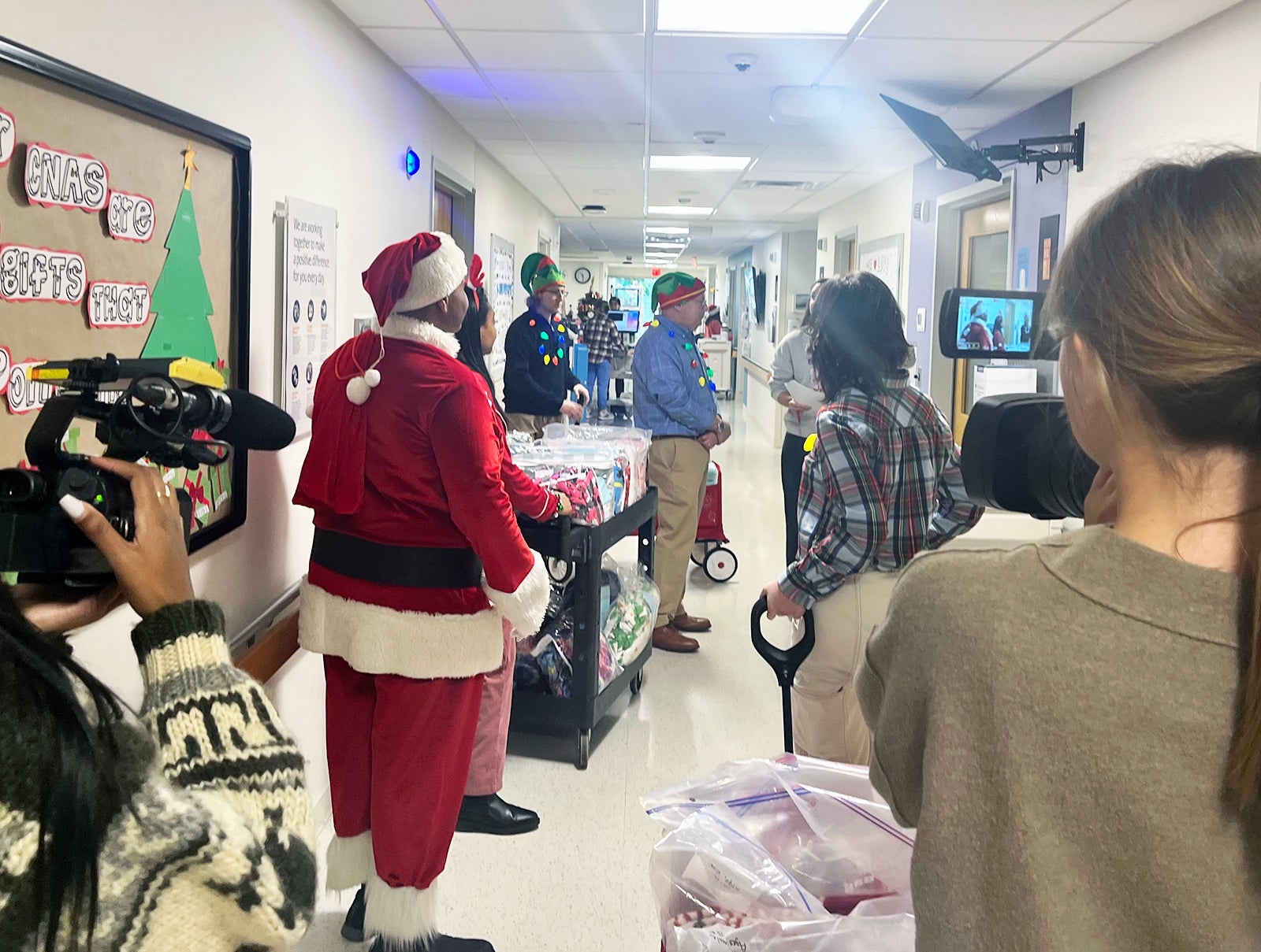 ‘Twas the morning of Christmas, when all through UVA Health Children’s seventh floor — Santa Claus and his elves were stirring, delivering gifts to some of our youngest patients, door-to-door.