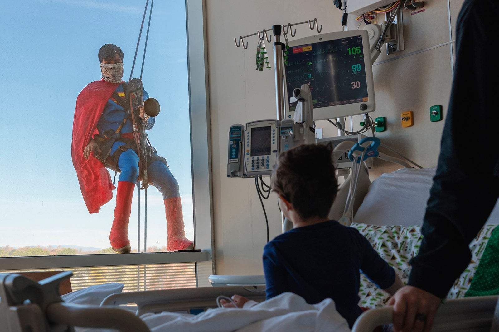 Before I close, I want to share a moment of joy from UVA Health Children’s. During a routine window-washing this month, our patients were greeted not by technicians, but by Spider-Man, Batman, Iron Man, Captain America, and even Deadpool rappelling down the building to wave hello.