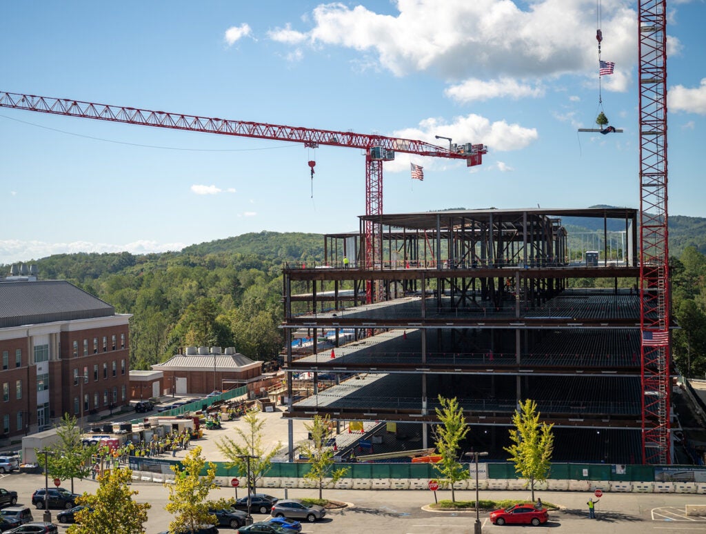 UVA recently celebrated a key phase in the construction of UVA Paul and Diane Manning Institute of Biotechnology with a “Topping Out” ceremony marking placement of the final steel beam on the new facility under construction at Fontaine Research Park. The institute will serve as the hub for biotechnology research, development, and manufacturing at UVA — bringing together scientists, clinicians, and industry partners to advance discoveries in cancer, neuroscience, and immunology. Phase One of the facility opens in 2027.