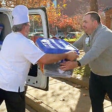 Chadwick French, Systems Operations Controller, UVA Health and Morrison Healthcare, and Food and Nutrition Services team members delivered the socks on Nov. 24 to The Salvation Army and The Haven.