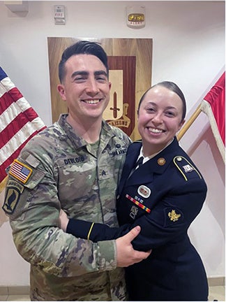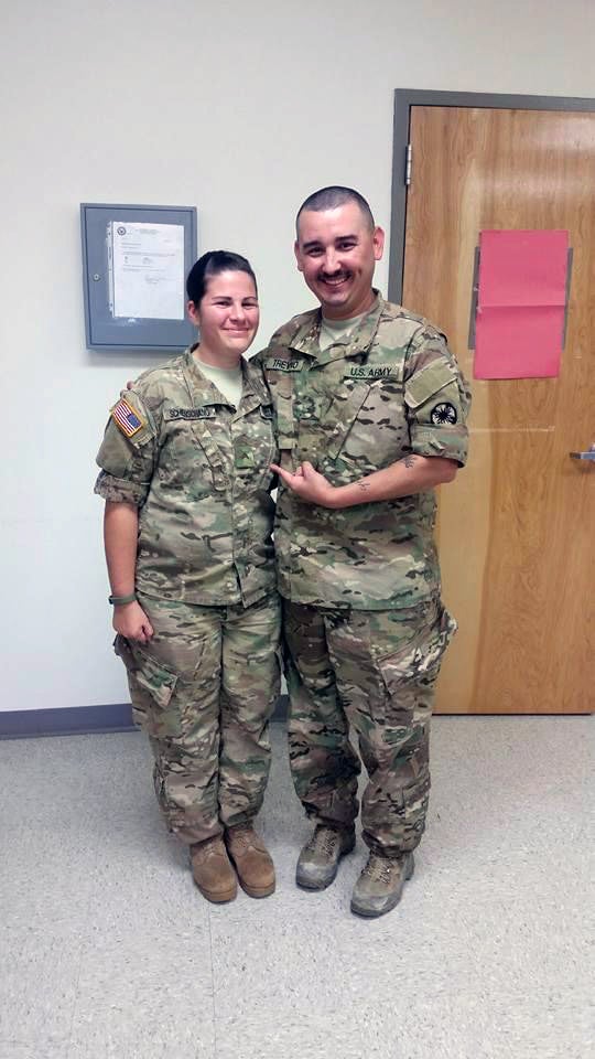 "My service impacted my life heavily, with my role in healthcare notwithstanding. During my time in service, I was placed in the role of Senior Medic, a role that saw me share responsibility for the medical readiness of a battalion. This position inspired me to pursue my Master's in Healthcare Administration and my current career path. I’m now working on attaining my Doctorate in Healthcare Administration. Working with the epilepsy team here at UVA, I know that I am a small cog in the machine that is genuinely working to conduct research and perform patient care for the benefit of the community. And I must thank all the other cogs in our department, our clinical and administrative support staff, who keep the lights on and enable our faculty to do their best." (Photo: "My wife and me on the day she passed her boards to become promotion eligible to the position of Sergeant.")
