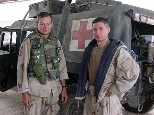 "My military experience really made me appreciate the resources we have in the U.S. and the opportunity for patients to receive the best care possible." (Photo: Iraq, 2003. Dr. Kruskzka [left] in flak jacket next to embedded journalist Rick Leventhal.)