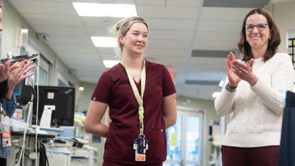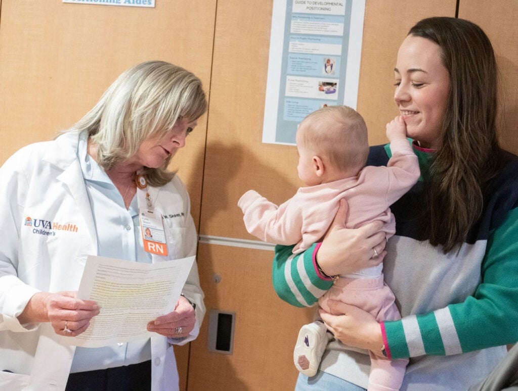 Twice is nice, and a UVA Health Children's nurse has gone above and beyond even that — to have a "lasting impact" on a special pair of patients and their family. UVA Health University Medical Center Associate Chief Nursing Officer Karin Skeen, PhD, RN, NEA-BC, and Jenny Ernest, Nursing Governance Coordinator, Nursing Professional Governance Office, surprised Anna Failes, BSN, RN, Newborn Intensive Care Unit (NICU), with a DAISY Award for her "extraordinary" efforts.